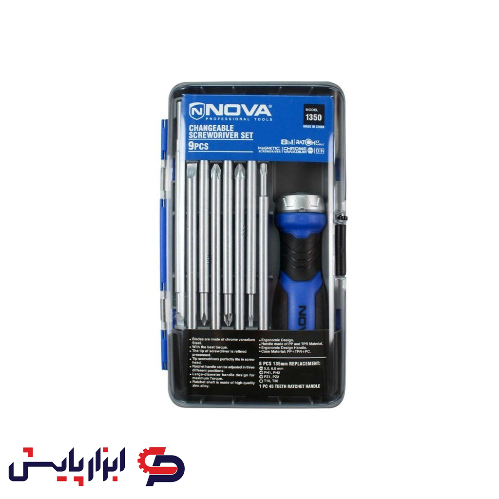 ست پیچ گوشتی قابل تعویض 9 عددی با دسته جغجغه ای مدل 1350