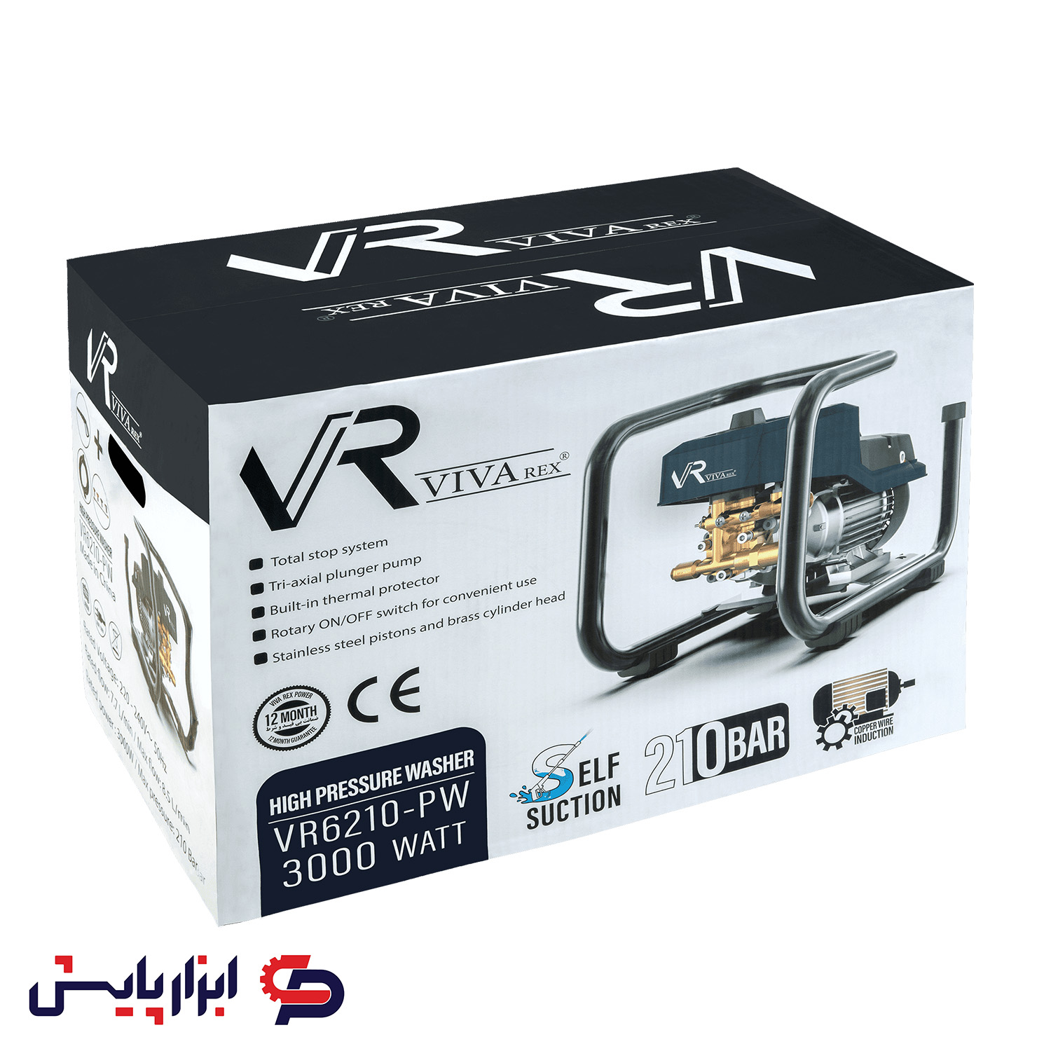 کارواش صنعتی 210 بار ویوارکس 3000 وات دینامی تمام مس مدل VR6210-PW